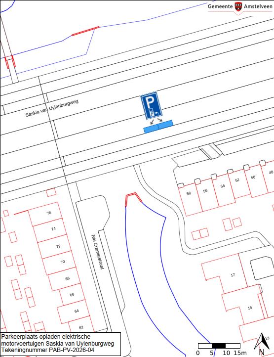 Burgemeester en wethouders van Amstelveen besluiten de locatie te wijzigen van de gereserveerde parkeerplaatsen voor het opladen van elektrische motorvoertuigen, zoals vastgesteld in het besluit van 11 december 2023 (zaaknummer Z23-106982), gelegen aan de Saskia van Uylenburgweg. De huidige locatie van de gereserveerde parkeerplaatsen zijn weergegeven op de in dit besluit opgenomen tekening PAB-PV-2023-299. De openbare laadpaal is nog niet geplaatst waardoor in de praktijk niets veranderd. De nieuwe locatie van de gereserveerde parkeerplaatsen voor het opladen van elektrische motorvoertuigen zijn weergegeven op de in dit besluit opgenomen tekening PAB-PV-2026-04.