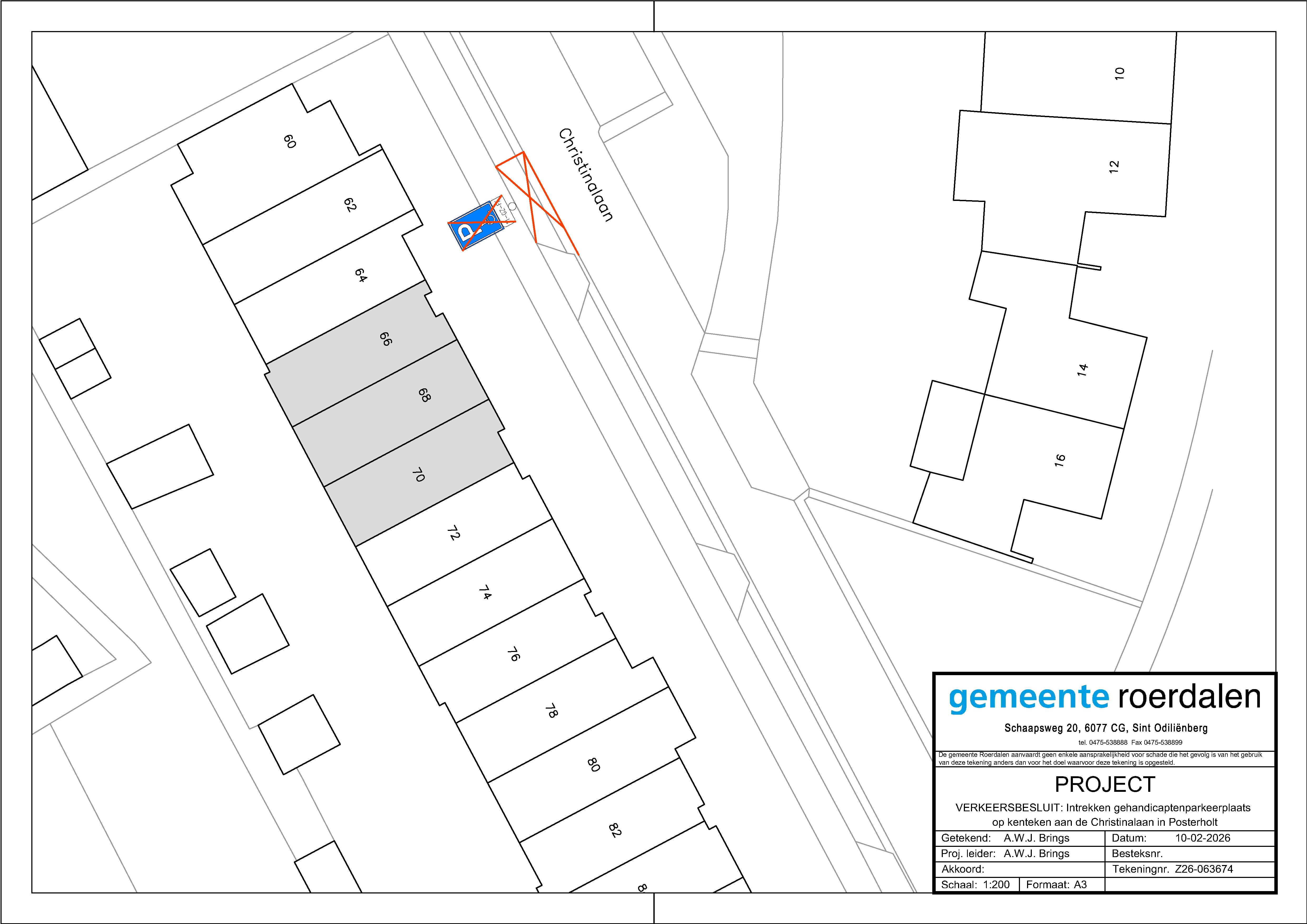 Verkeersbesluit: Intrekken gehandicaptenparkeerplaats op kenteken aan de Christinalaan, Posterholt.