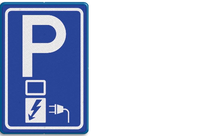 Verkeersborden, bord model E8c (parkeergelegenheid alleen bestemd voor het opladen van elektrische voertuigen)