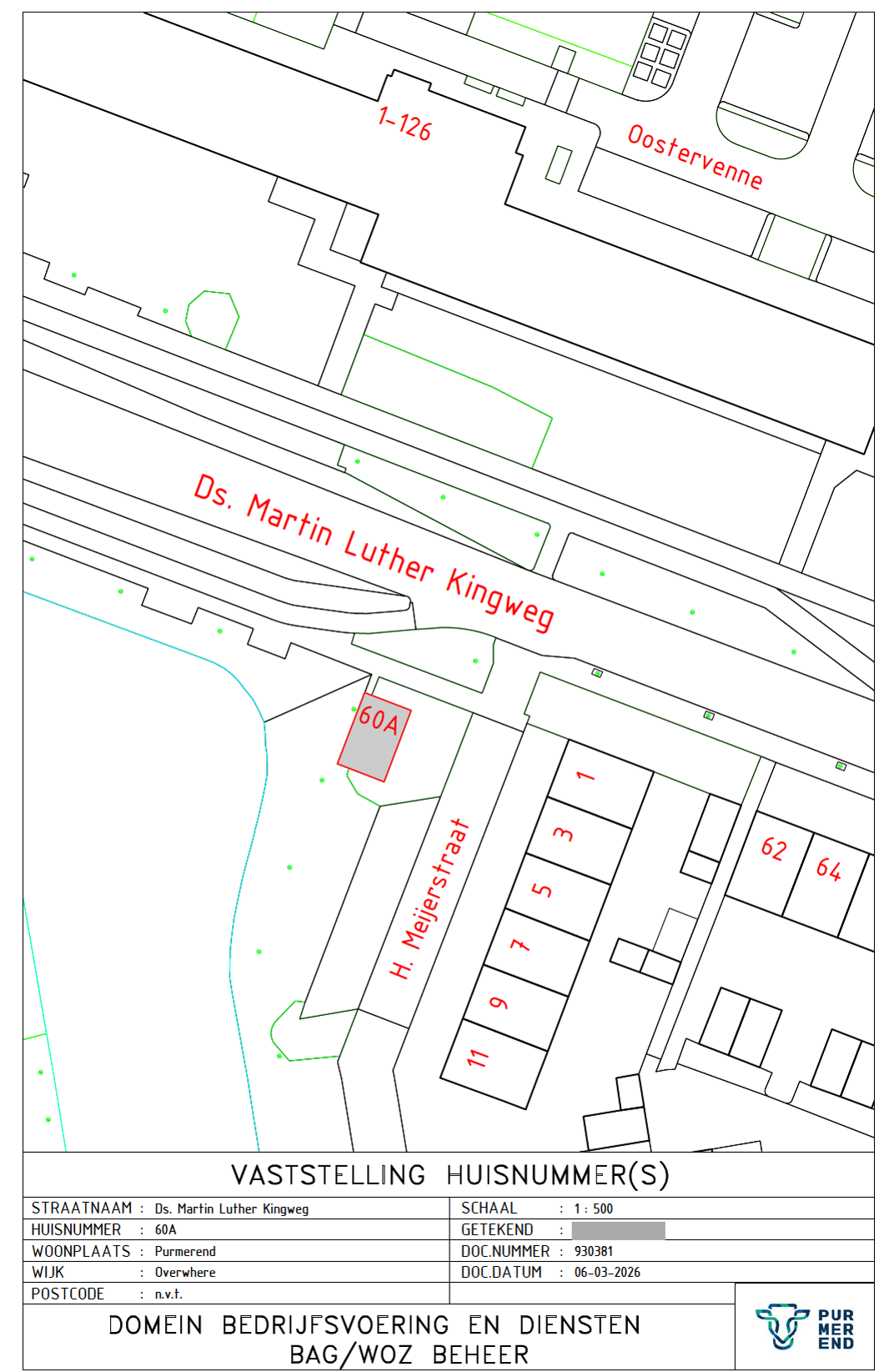 Kennisgeving huisnummerbesluit Ds. Martin Luther Kingweg 6oA Purmerend