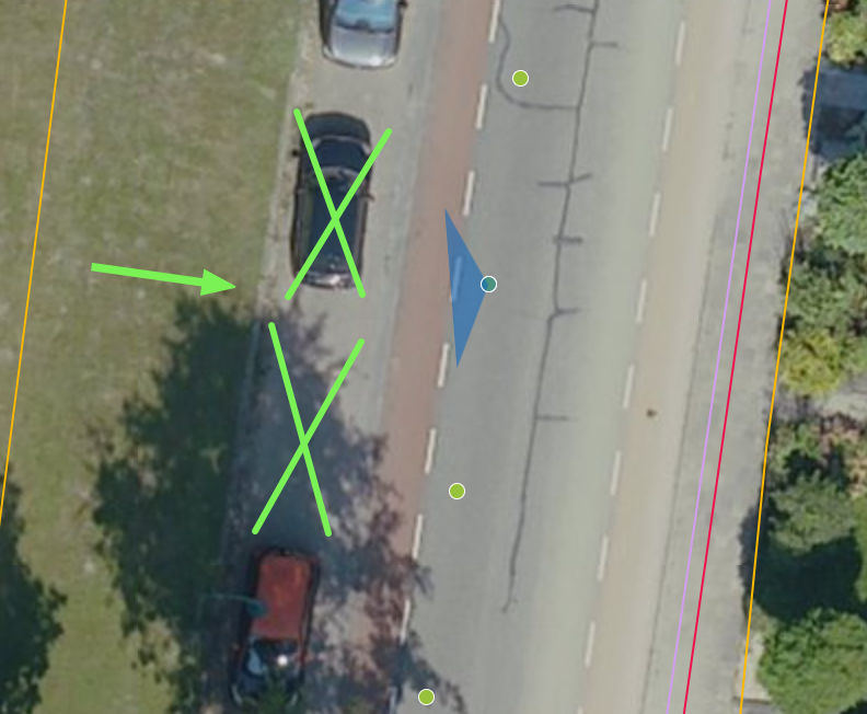 door het plaatsen van het bord E8c van Bijlage I van het Reglement Verkeersregels en Verkeerstekens 1990 (RVV 1990) met een onderbord model OB504 met pijlen, waaruit blijkt dat het bord voor twee parkeerplaatsen van toepassing is.