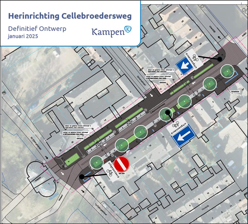 - de Cellebroedersweg onderdeel is van een belangrijke fietsroute van en naar het winkelgebied van de binnenstad van Kampen. Met het instellen van éénrichting voor autoverkeer zorgt dit voor een lagere verkeersintensiteit en daarmee een aantrekkelijkere en veiligere fietsverbinding.