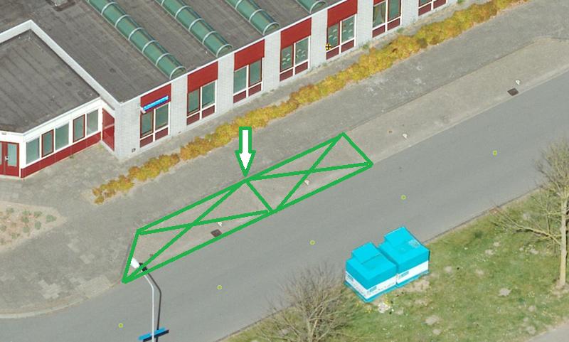 De parkeerplaatsen zijn alleen bedoeld voor het opladen van elektrische auto’s. Daarom plaatsen we het verkeersbord E08c (dit staat in bijlage I van het RVV 1990). We plaatsen ook het verkeersbord OB504 daaronder. Dit is een bord met twee pijlen die wijzen naar de parkeerplaatsen.