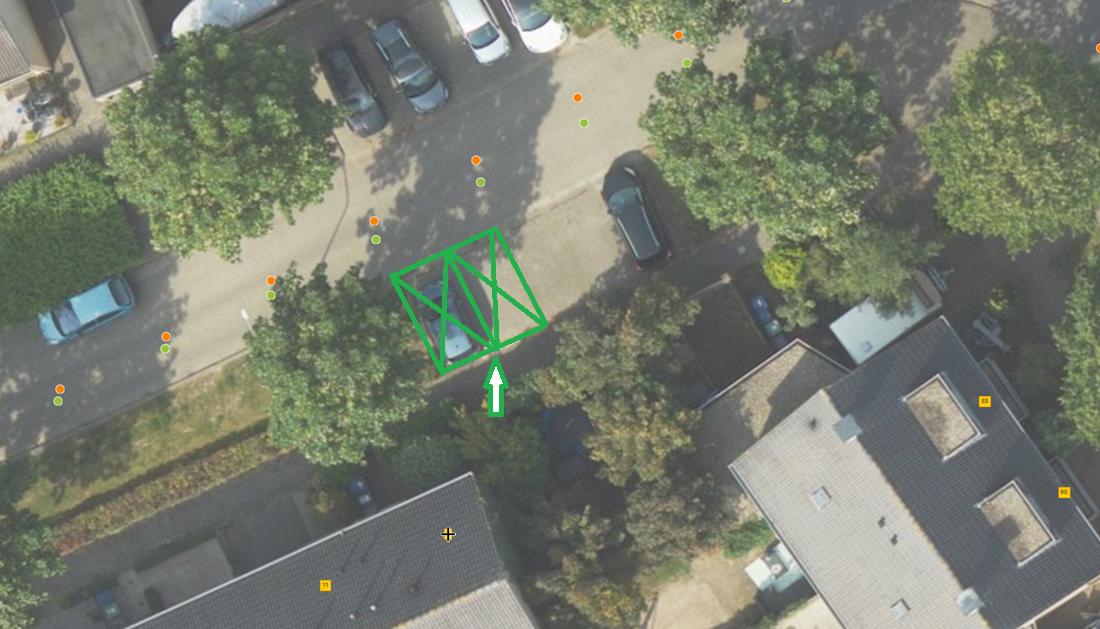 De parkeerplaatsen zijn alleen bedoeld voor het opladen van elektrische auto’s. Daarom plaatsen we het verkeersbord E08c (dit staat in bijlage I van het RVV 1990). We plaatsen ook het verkeersbord OB504 daaronder. Dit is een bord met twee pijlen die wijzen naar de parkeerplaatsen.