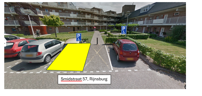 Het college van burgemeester en wethouders van de gemeente Katwijk nemen een verkeersbesluit voor het aanwijzen van een gereserveerde gehandicaptenparkeerplaats. Onlangs is een aanvraag ingediend om ter hoogte van Smidstraat 57 in Rijnsburg een gereserveerde gehandicaptenparkeerplaats aan te leggen. Om ervoor te zorgen dat de parkeerplaats alleen gebruikt kan worden door de begunstigde, is gemeente voornemens om bebording te plaatsen die aangeeft dat de nabijgelegen parkeerplaats alleen gebruikt mag worden voor het parkeren van het voertuig met het op het onderbord vermelde kenteken