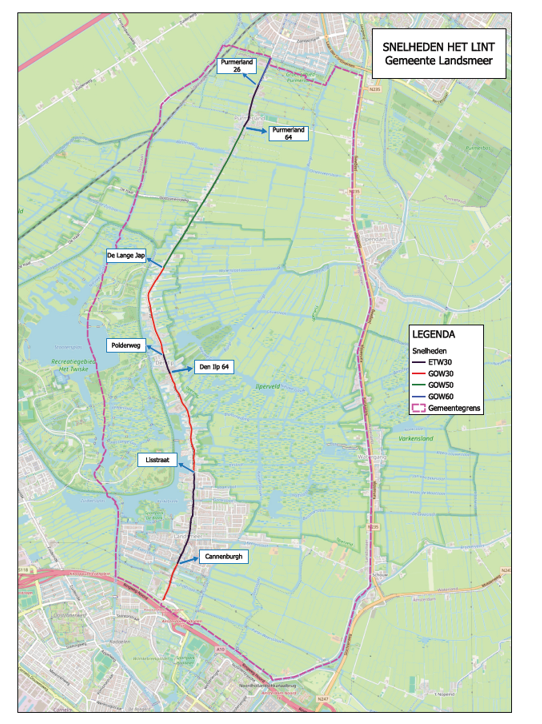 tot het wijzigen van de wegcategorie GOW50 naar ETW30 op het wegdeel tussen Purmerland 34 en Purmerland 26, conform situatieschets;