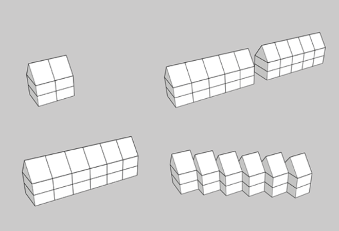 Voorbeelden van een blok (links) en twee aaneengebouwde blokken (rechts).