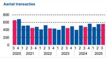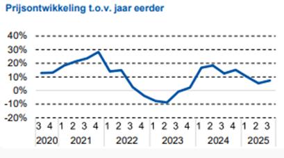 De in 2024 ingezette stevige prijsontwikkeling op de woningmarkt heeft zich de eerste drie kwartalen van 2025 doorgezet. Door de belangrijke hypotheekverstrekkers wordt voor 2026 ten opzichte van voorgaande jaren een iets afvlakkende prijsstijging verwacht.