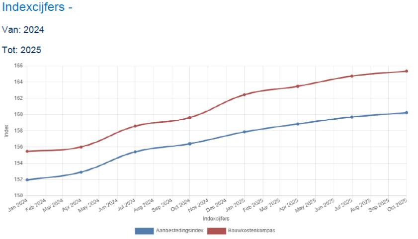 Figuur 2: Ontwikkeling bouwkostenprijzen Woningbouw januari 2024 richting oktober 2025