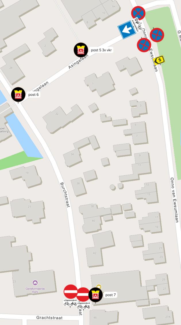 Eénrichting Asingalaan, Burchtstraat en stopverbodborden rond kruising Onno van Esumlaan en Asingalaan: