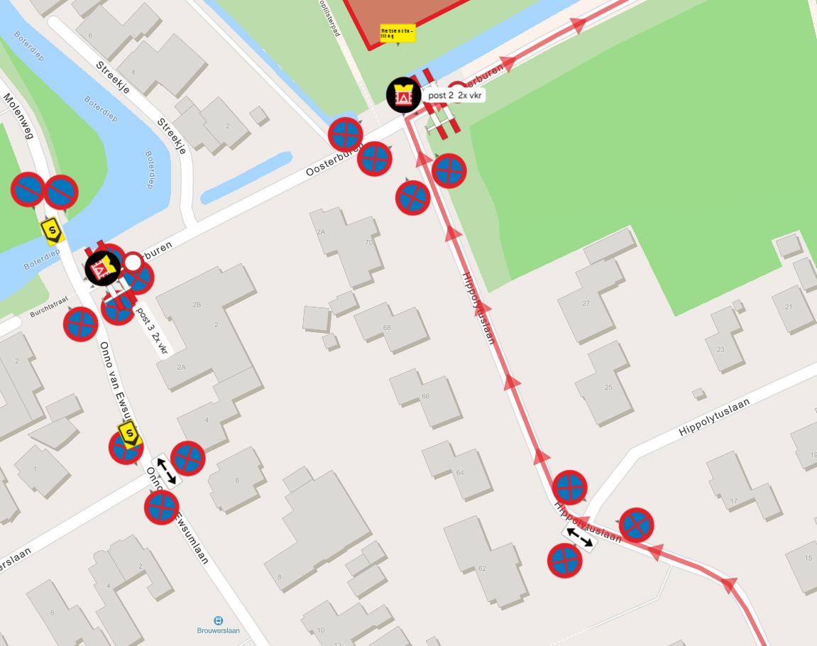 Op 21, 22, 27 en 28 maart de volgende verkeersmaatregelen te treffen en op de situatieschets ook te zien: