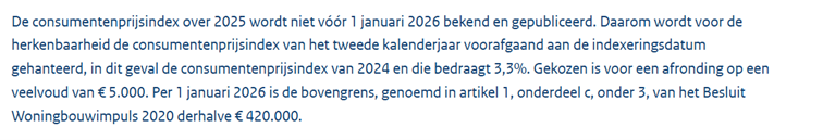 Aanpassing vrij op naamprijs betaalbare koopwoningen per 1 januari 2026