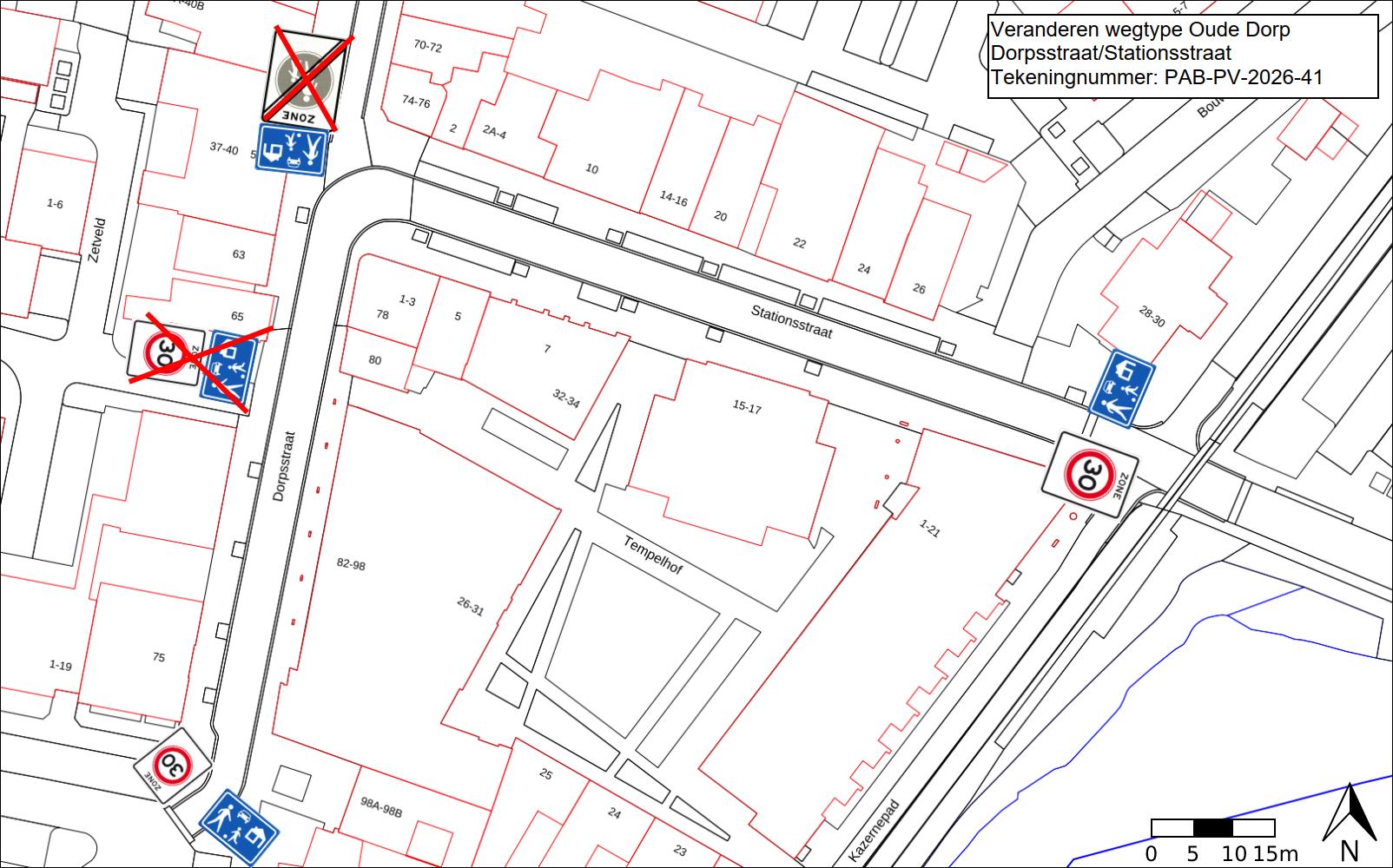 Burgemeester en wethouders van Amstelveen besluiten om in het Oude Dorp de Stationsstraat en de Dorpsstraat af te waarderen van een erftoegangsweg naar een erf. Deze aanpassing is nodig om de ambitie vanuit het Plan van Aanpak (2019), Positionering Oude Dorp en het Beeld Kwaliteits Plan te realiseren. Deze ambitie ter verbetering van het verblijfsklimaat houdt in dat het gebied tussen de pollers wordt getransformeerd tot een shared space. De aanpassingen in het bebordingsplan staan weergegeven in afbeelding: PAB-PV-2026-41.