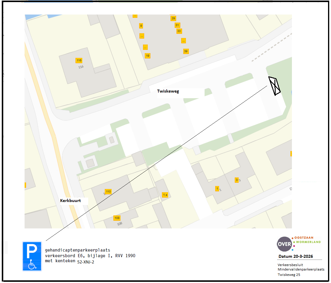 - De bewoner van Twiskeweg 25 te Oostzaan een aanvraag heeft gedaan voor een mindervalidenparkeerplaats op kenteken;