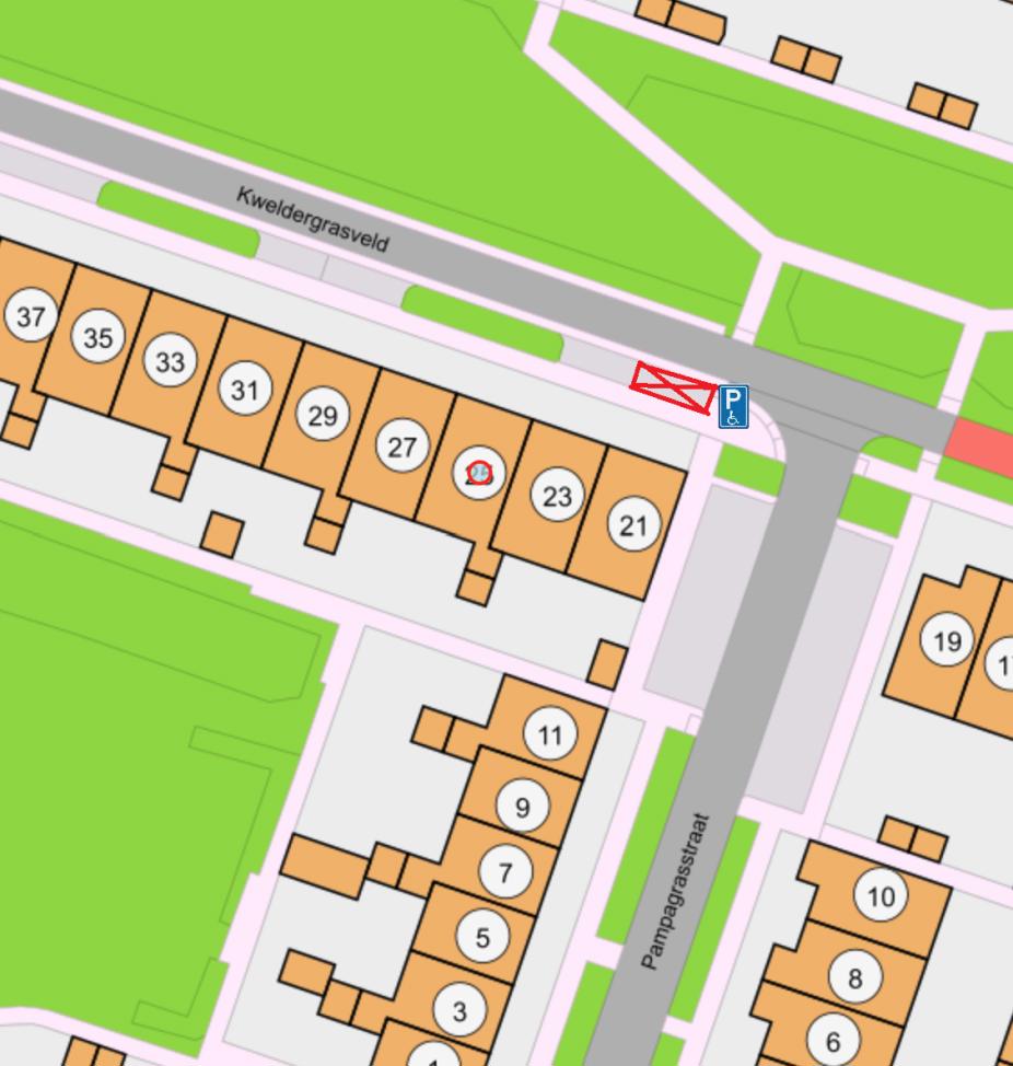 Aanwijzen en inrichten van een gehandicaptenparkeerplaats op kenteken ten behoeve van het Kweldergrasveld 25