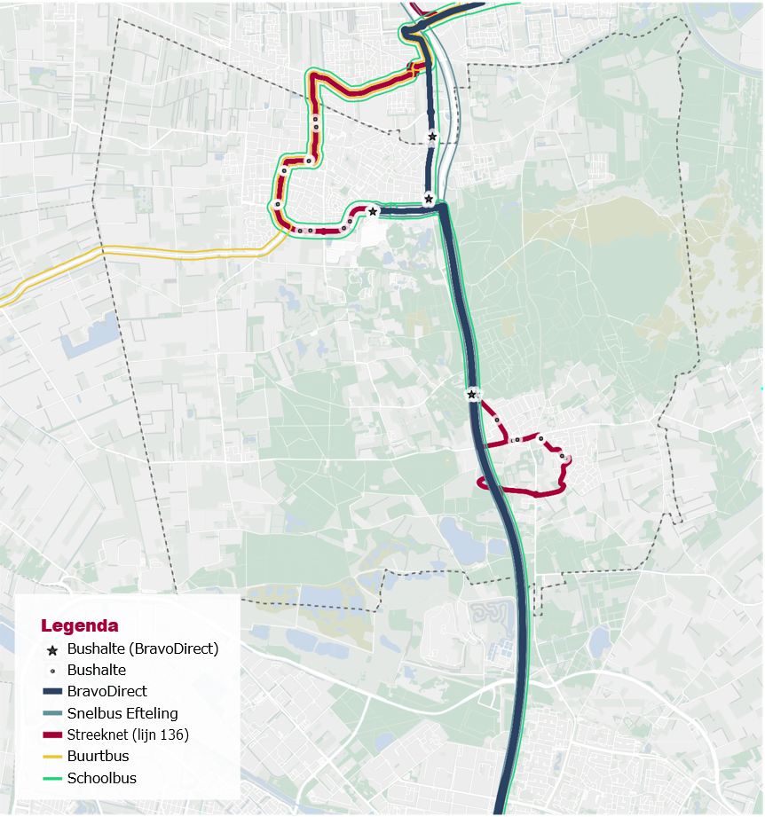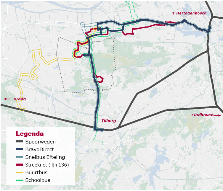 De provincie en gemeenten op de lijn Tilburg – Loon op Zand - Efteling - Waalwijk – Heusden – ‘s-Hertogenbosch werken gezamenlijk aan een stapsgewijze doorontwikkeling van het openbaar vervoer naar BRT-niveau (Bus Rapid Transit). Hierbij wordt via de stappen brons (o.a. opwaarderen halte), zilver (doorstromingsmaatregelen) en goud (route zoveel mogelijk over auto(snel)wegen), om zo te komen tot een snelle en frequente openbaar verbinding op deze lijn.