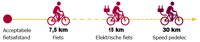 Over het algemeen wordt een afstand tot 7,5 kilometer op een gewone fiets als een acceptabele fietsafstand gezien voor dagelijkse verplaatsingen. Voor een elektrische fiets ligt deze afstand hoger, namelijk tot maximaal 15 kilometer. Sinds de opkomst van de elektrische fiets wordt fietsen voor steeds meer mensen, ook voor langere afstanden, een aantrekkelijker alternatief voor autoritten naar omliggende steden en bestemmingen. Daarnaast kunnen Speed pedelecs hogere snelheden bereiken en maken daardoor afstanden tot 30 kilometer of meer haalbaar voor dagelijkse verplaatsingen. Toch worden er veel korte verplaatsingen afgelegd met de auto. Gezien de vele voordelen van de fiets ten opzichte van de auto willen we stimuleren om verplaatsingen met de (elektrische) fiets te maken in plaats van met de auto. Hiervoor kijken we niet alleen naar het fietsnetwerk binnen de gemeente, maar ook naar hoogwaardige verbindingen met bestemmingen als Waalwijk, Tilburg of Dongen.