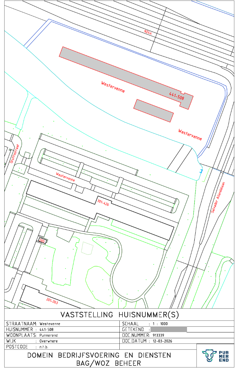 Kennisgeving huisnummerbesluit Westervenne 441 t/m 508 Purmerend