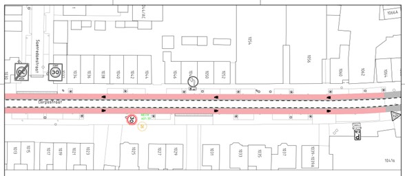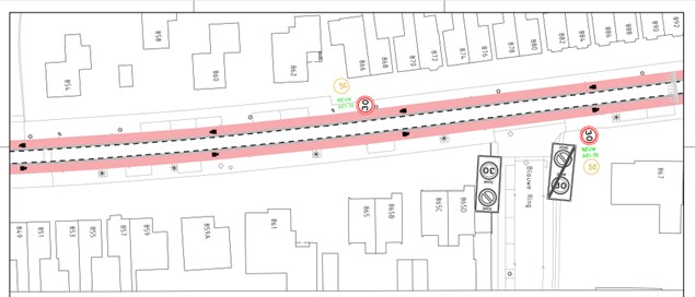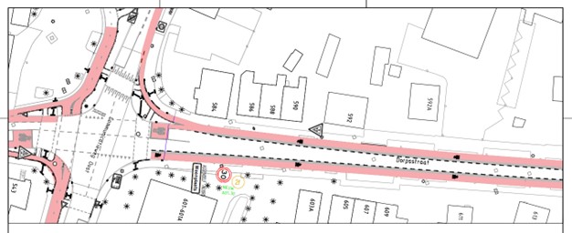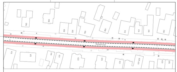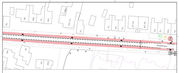 op de Dorpsstraat ter hoogte van huisnummer 1014-1014A aan flespaal ter hoogte van het kruispunt met de Renessestraat;