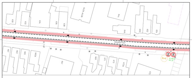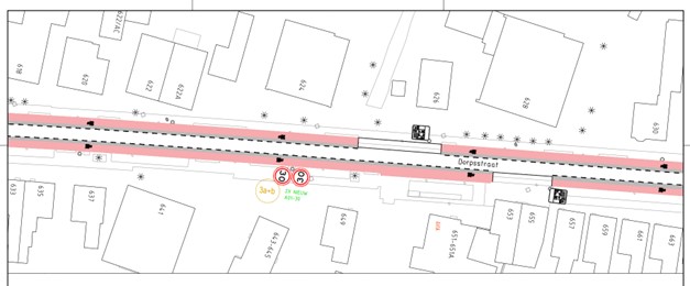 het plaatsen van herhalingsborden voor de GOW30 op de Dorpsstraat ter hoogte van