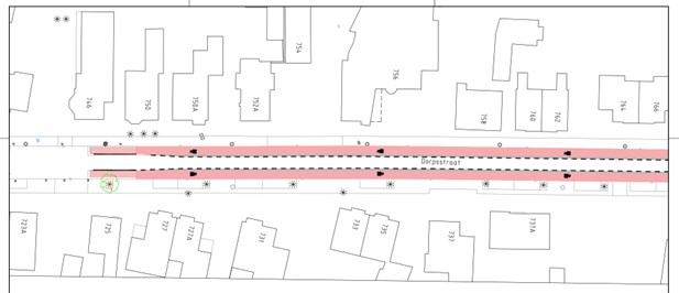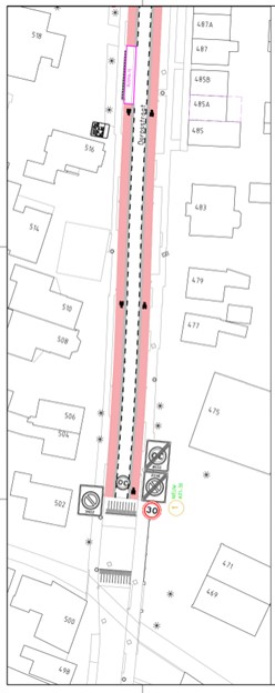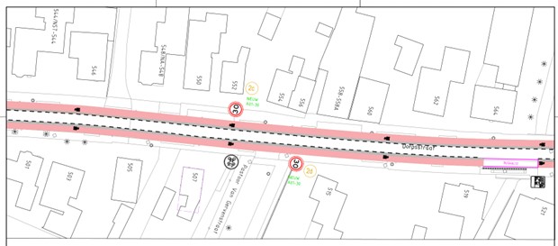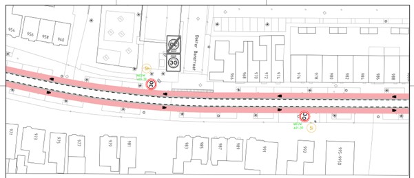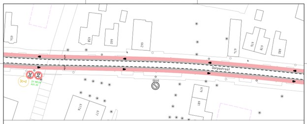 de huidige suggestiestroken verbreed worden naar fietsstroken van 2,2m als maximale maat voor een smalle GOW30 weg;