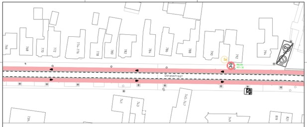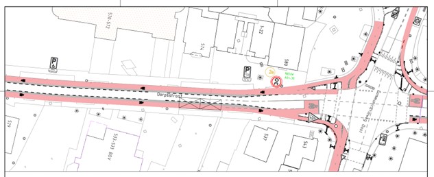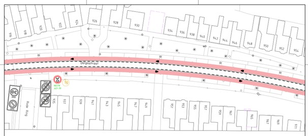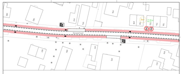 op de Dorpsstraat ter hoogte van huisnummer 937 aan flespaal ter hoogte van het kruispunt met de Rode Ring;