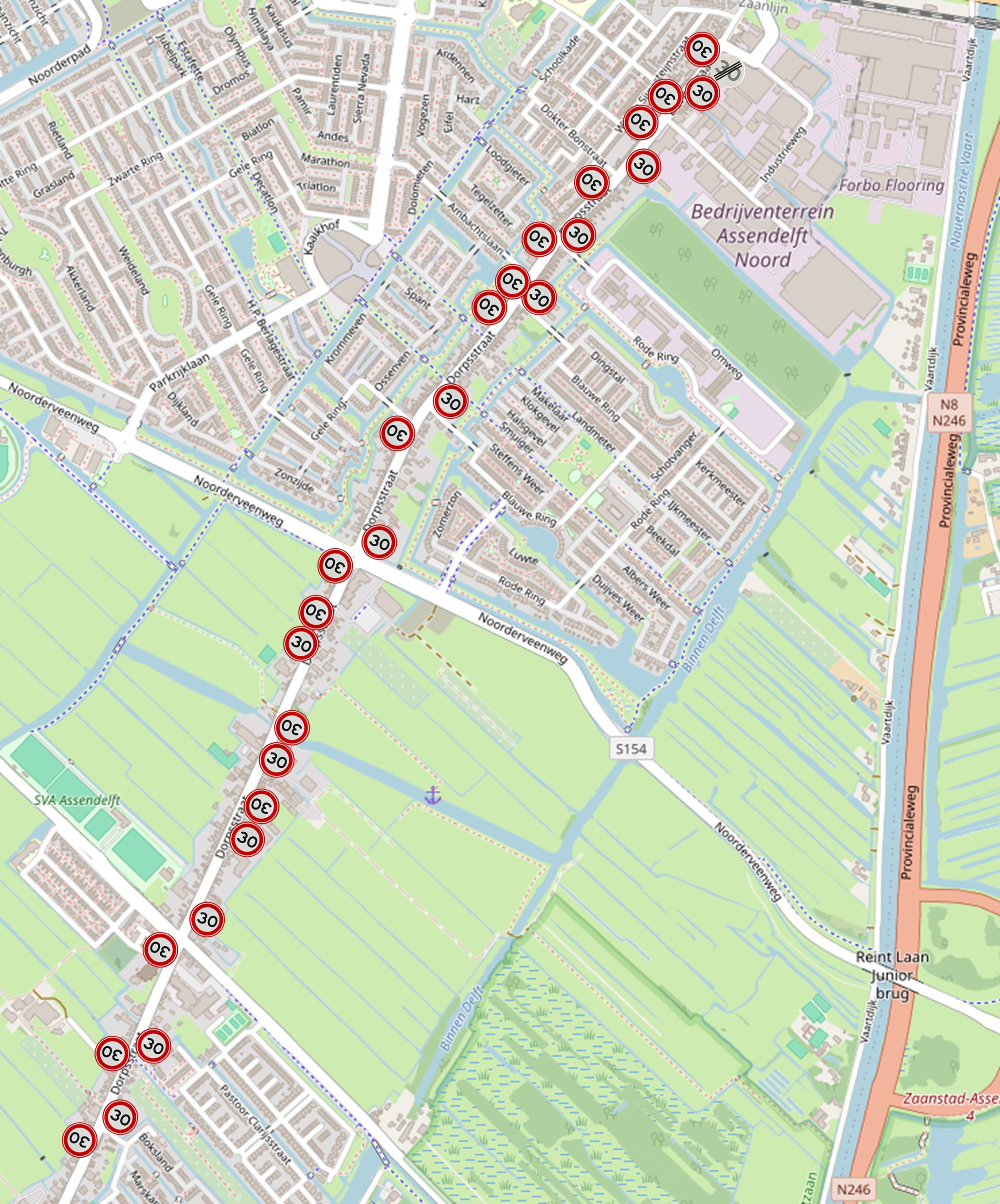 Verkeersbesluit gebiedsontsluitingsweg 30 km/h Dorpsstraat tussen de Dorpsstraat t.h.v. huisnr. 502 en de Industrieweg in Assendelft