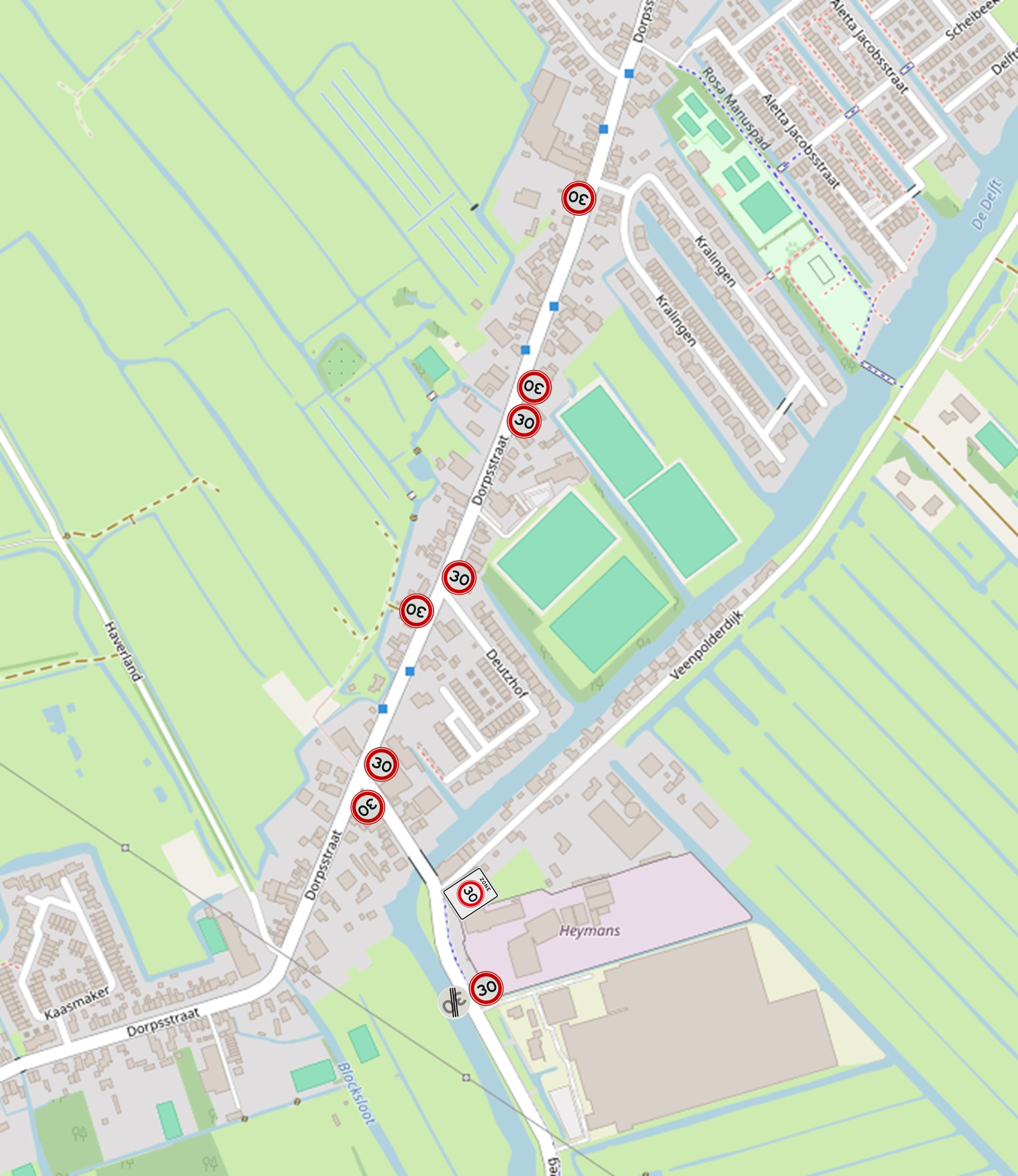 Verkeersbesluit gebiedsontsluitingsweg 30km/h Dorpsstraat tussen de Zaandammerweg en Kralingen, Assendelft