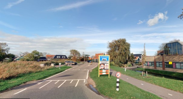 het intrekken van bord A01-50 bij het betreden van de bebouwde kom van Assendelft aan de Zaandammerweg,