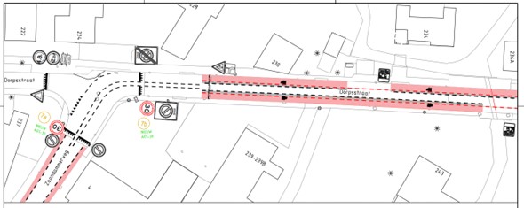 de huidige suggestiestroken op de Dorpsstraat zonder fietssymbool geen formele status hebben;
