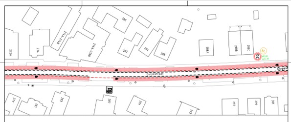 de huidige suggestiestroken verbreed worden naar fietsstroken van 2,2m als maximale maat voor een smalle GOW30 weg;