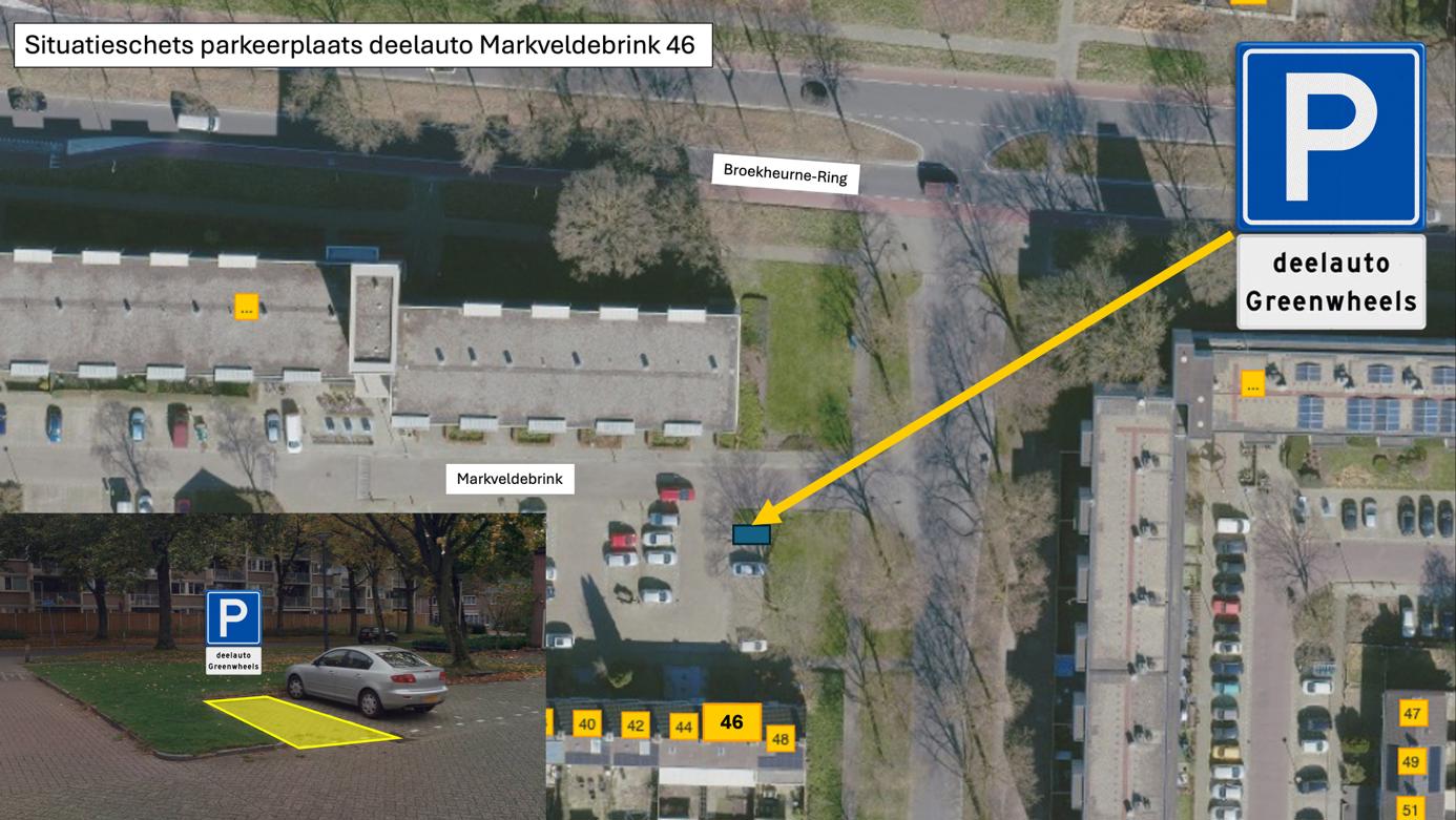 dat de precieze plaatsaanduiding luidt: Markveldebrink; parkeervak ter hoogte van Markveldebrink 46, zoals deze is weergegeven in bijgevoegde situatieschets;