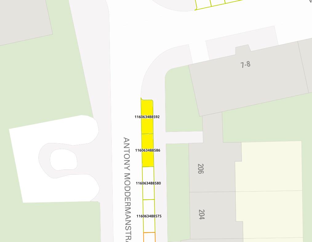 Twee parkeerplaatsen ter hoogte van perceel Antony Moddermanstraat 206 (parkeervaknummers 116063488592 en 116063488586) aan te wijzen voor het opladen van elektrische voertuigen door het plaatsen van een bord conform model E8c van Bijlage I van het RVV 1990, gecombineerd met onderbord OB504 met daarop afgebeeld twee pijlen op een hoek van 45° (RVV 1990).