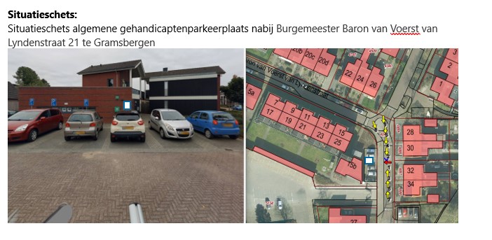 -van een inwoner een aanvraag is ontvangen voor aanwijzing van een algemene gehandicaptenparkeerplaats nabij het adres Burgemeester Baron van Voerst van Lyndenstraat 21 te Gramsbergen;