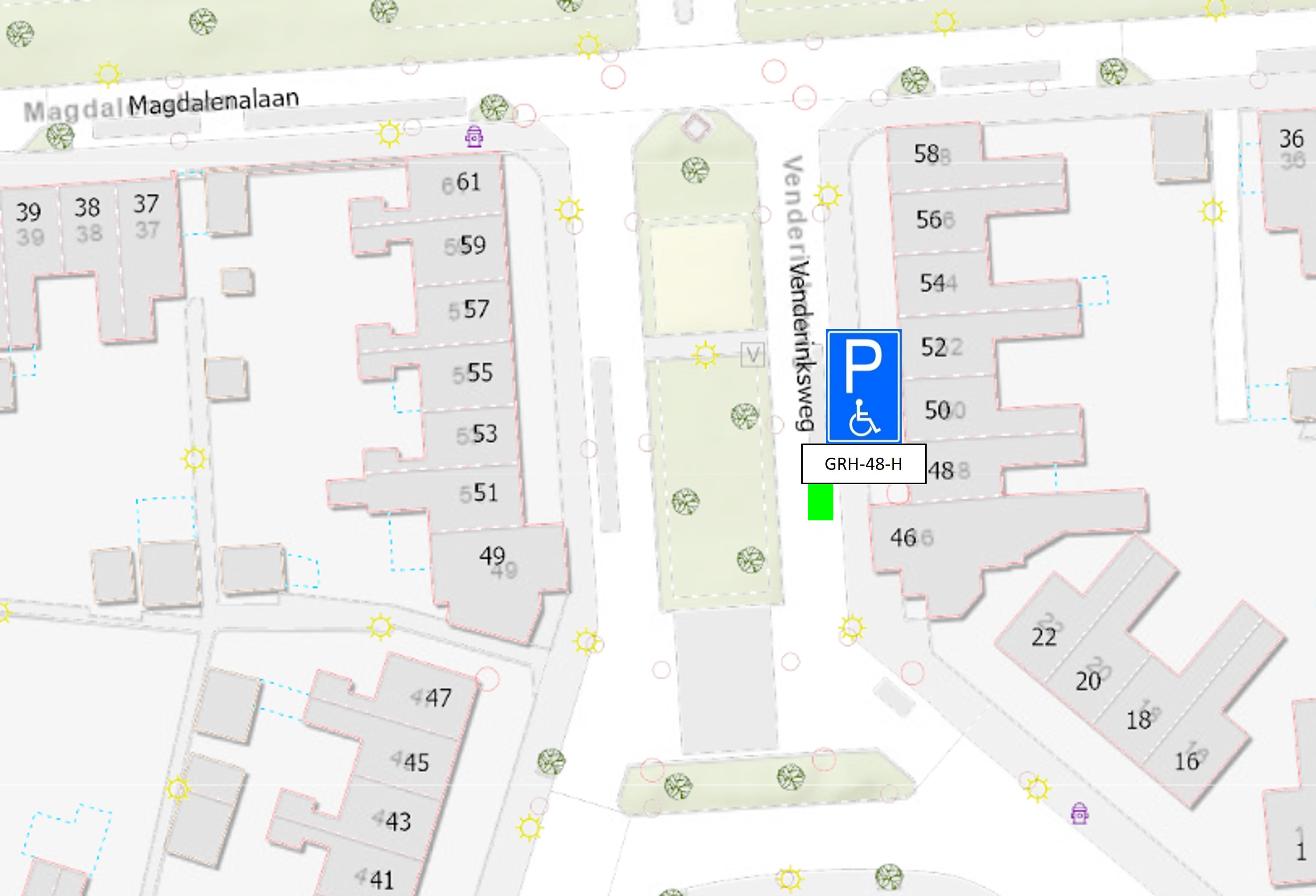 We wijzen aan de Venderinksweg, ter hoogte van perceelnummer 48, een gehandicaptenparkeerplaats toe voor het voertuig met kenteken GRH-48-H. Deze plek maken we herkenbaar met verkeersbord E6 (RVV 1990) en een onderbord met het kenteken. De exacte locatie staat op de tekening die bij dit besluit hoort.