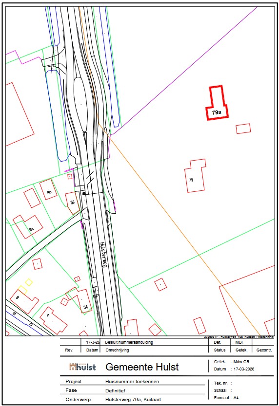 Gelet op het besluit van burgemeester en wethouders van 6 november 2012 waarbij ik, medewerker met functiefamilie Gegevens II, gemandateerd ben om nummeraanduidingen toe te kennen aan verblijfsobjecten, stand en ligplaatsen, ingevolge artikel 6 van de Wet BAG, luidt het besluit als volgt: