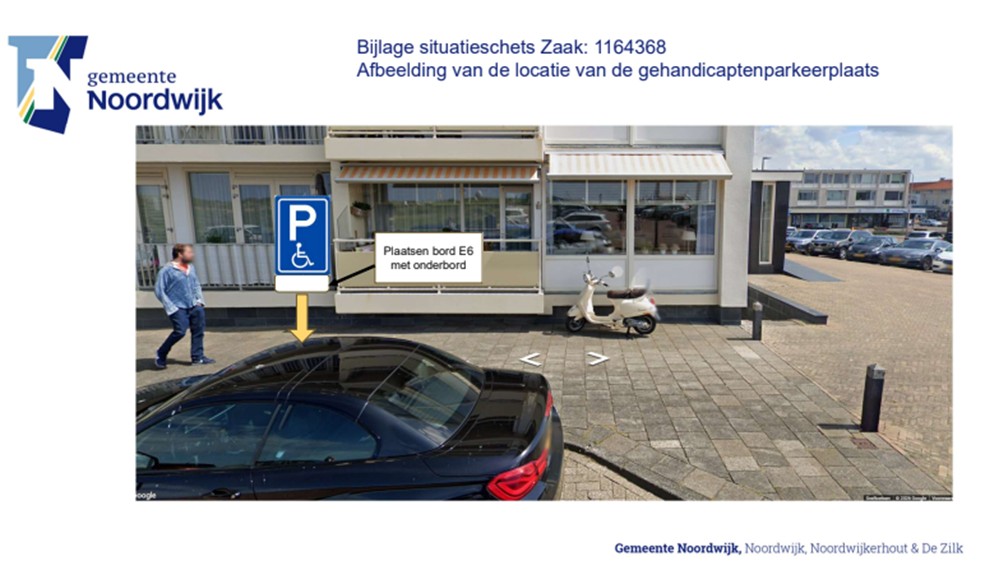- De aanvraag is gedaan voor een gehandicaptenparkeerplaats op een (deel van) een binnen de bebouwde kom gelegen weg, die in eigendom, beheer en onderhoud is van de gemeente Noordwijk;