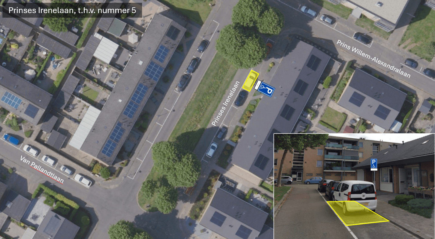 Verkeersbesluit instellen gehandicaptenparkeerplaats op kenteken, Prinses Irenelaan nabij nr.5 te Valkenburg.