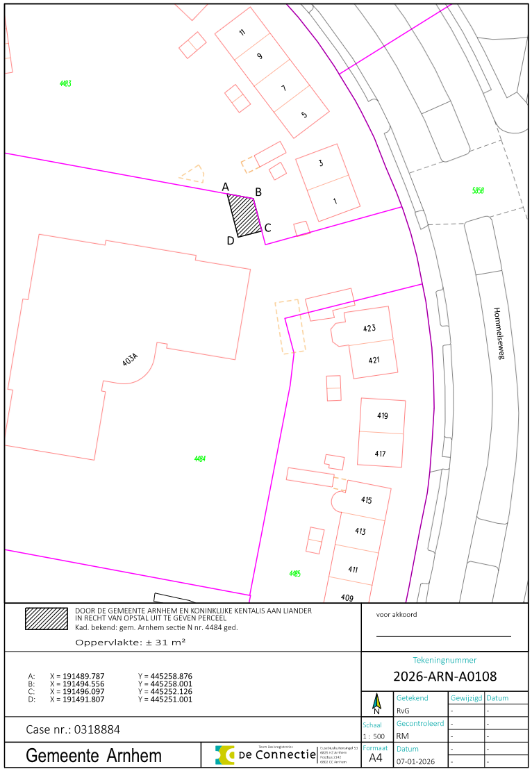 Liander N.V. is voornemens om op het schoolterrein van Kentalis aan de Hommelseweg 403A te Arnhem, kadastraal bekend gemeente Arnhem, sectie N nummer 4484 (gedeeltelijk perceel), een middenspanningsruimte (hierna: MSR) te realiseren ten behoeve van de stroomvoorziening van het omliggende gebied. De gemeente Arnhem is economisch eigenaar van dit perceel.