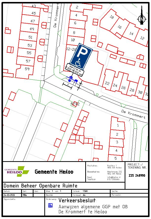 - op het verkeersbesluit met kenmerk Z25 248990 'Aanwijzen algemene gehandicaptenparkeerplaats De Krommert te Heiloo', gepubliceerd in het digitale Gemeenteblad (2026,65364) op 12 februari 2026, een bezwaar is gekomen;