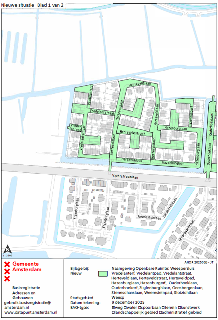 [Deze publicatie betreft een rectificatie omdat de openbare ruimte ‘Vredelanterf’ niet was opgenomen in de opsomming van het besluit en de legenda’s bij de situatietekeningen. De oorspronkelijke publicatie is op 24 maart 2026 bekendgemaakt, beschikbaar via Gemeenteblad 2026, 136780.]