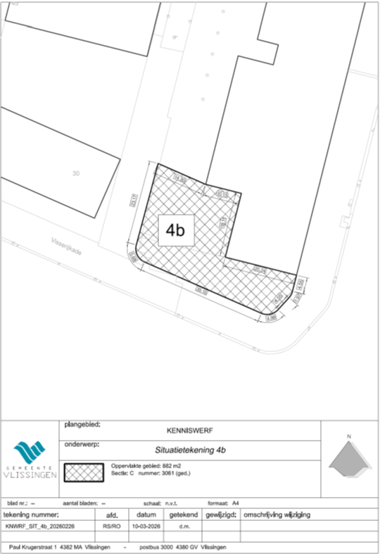 Perceel: Gemeente Vlissingen, Sectie C, nummer 3061 (gedeeltelijk) van circa 882 m² hierna te noemen 4b.
