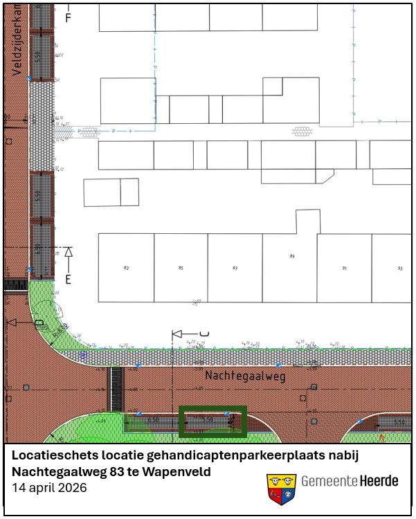 • aan de Nachtegaalweg te Wapenveld nabij de woning aan Nachtegaalweg 83 een gehandicaptenparkeerplaats in te richten voor een motor- of invalidenvoertuig dat door of ten behoeve van het vervoer van invaliden wordt gebruikt door plaatsing van bord E06 van bijlage 1 van het Reglement Verkeersregels en Verkeerstekens 1990 (RVV 1990);