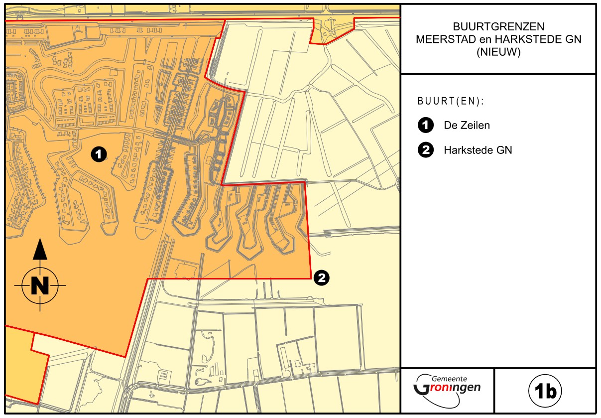 de grenzen van de buurten De Zeilen en Harkstede GN te wijzigen overeenkomstig bijlage 1b;