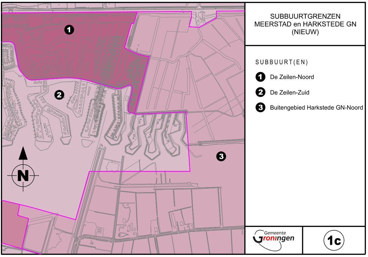 de grenzen van de subbuurten De Zeilen-Noord, De Zeilen-Zuid en Buitengebied Harkstede GN-Noord te wijzigen overeenkomstig bijlage 1c;