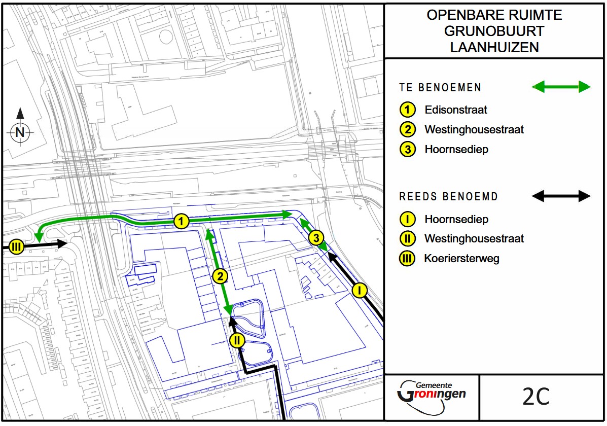 in de openbare ruimte van de buurten Grunobuurt en Laanhuizen in de woonplaats Groningen van het type weg te benoemen: Edisonstraat, Westinghousestraat en Hoornsediep, overeenkomstig bijlage 2c;