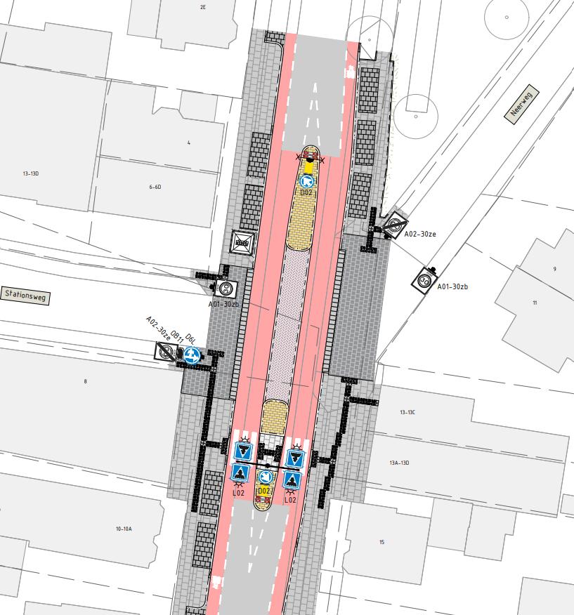 Daarnaast wordt een gebod voor rechtdoor en links afslaan D6l geplaatst op de Stationsweg met de kruising Torenstraat-Neerweg, geldend voor vrachtwagens OB11.