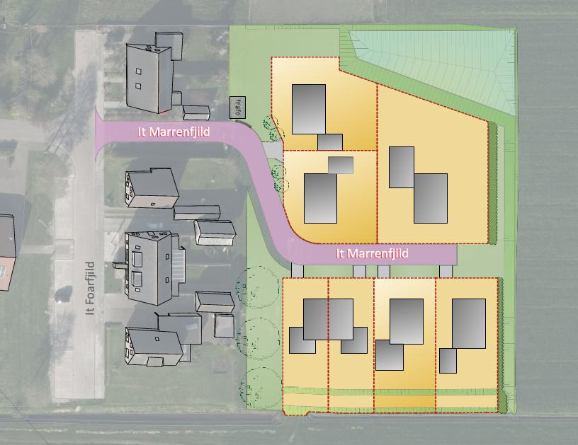 In Tjerkgaast wordt een uitbreiding gerealiseerd, BTO Tjerkgaast. Deze nieuwe straat ligt tegenover de straat It Foarfjild. Lokaal is er gekozen om te verwijzen naar de historische omgeving. In dit geval van deze individuele straat wordt er aangesloten bij dit bestaande thema. De vastgestelde straatnaam is dan ook: It Marrenfield.