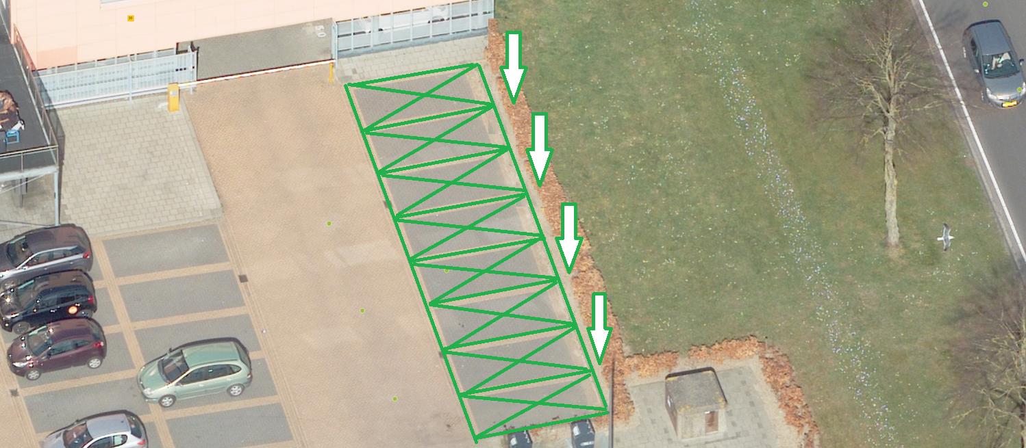 De parkeerplaatsen zijn alleen bedoeld voor het opladen van elektrische auto’s. Daarom plaatsen we het verkeersbord E08c (dit staat in bijlage I van het RVV 1990). We plaatsen ook het verkeersbord OB504 daaronder. Dit is een bord met twee pijlen die wijzen naar de parkeerplaatsen.