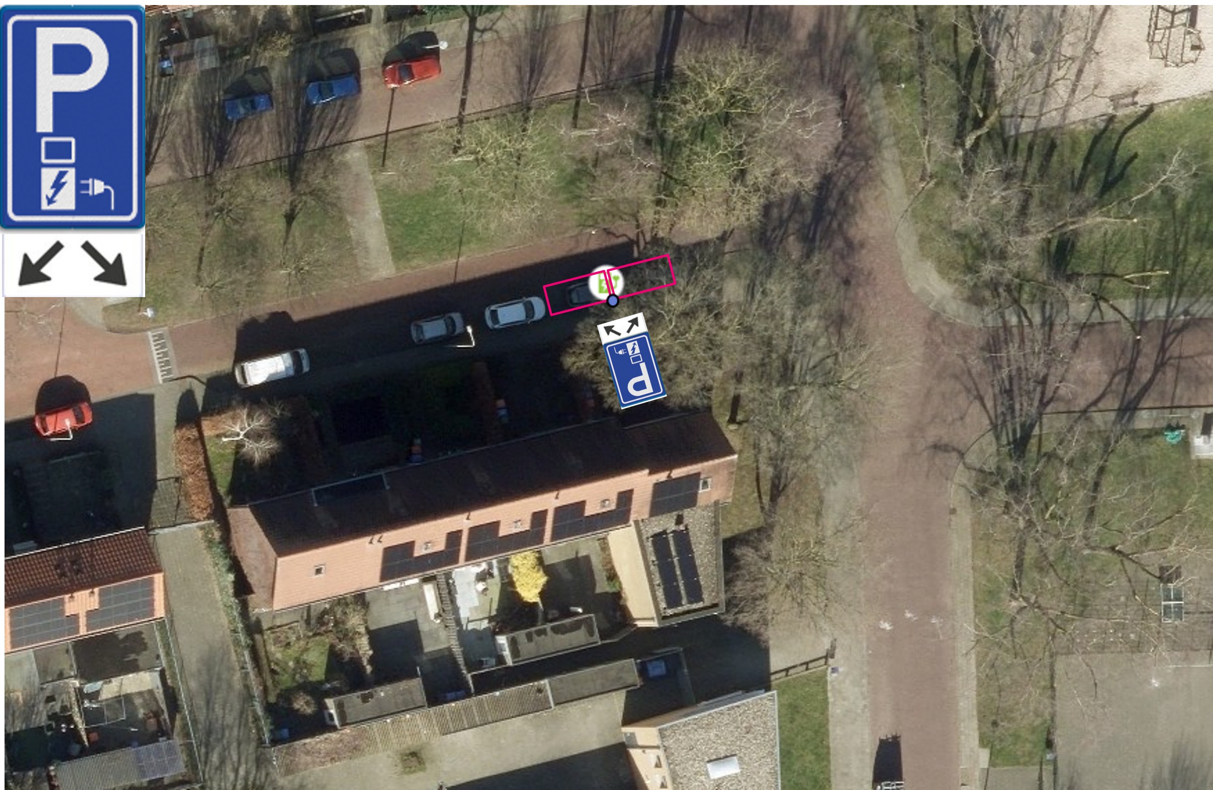 1. door plaatsing van verkeersbord E8c (parkeergelegenheid alleen bestemd voor het opladen van elektrische voertuigen), volgens bijlage 1 van het RVV 1990, voorzien van onderbord OB504 (pijlen waarmee de parkeerplaatsen wordt aangegeven), twee parkeerplaatsen te reserveren voor het opladen van elektrische auto’s thv Goudenregenstraat 62;